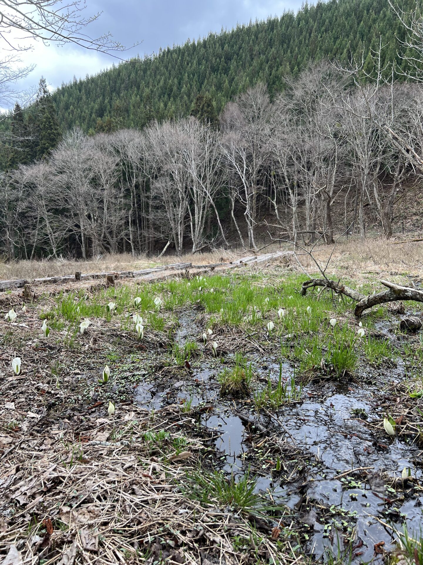また、越本水芭蕉の森では、水芭蕉が2~3分咲きとなっています。