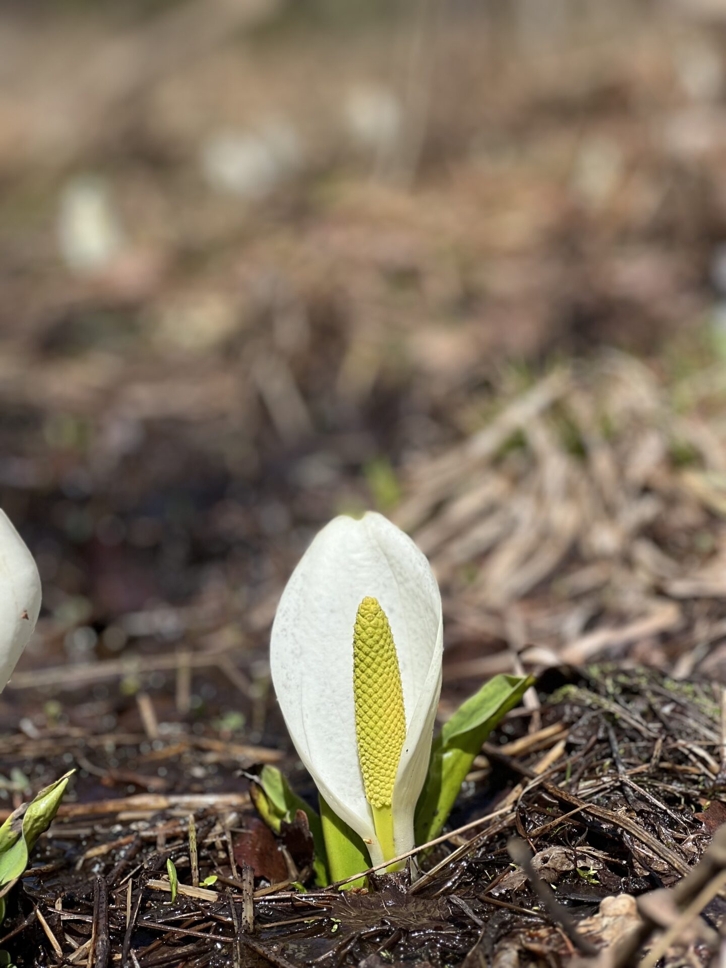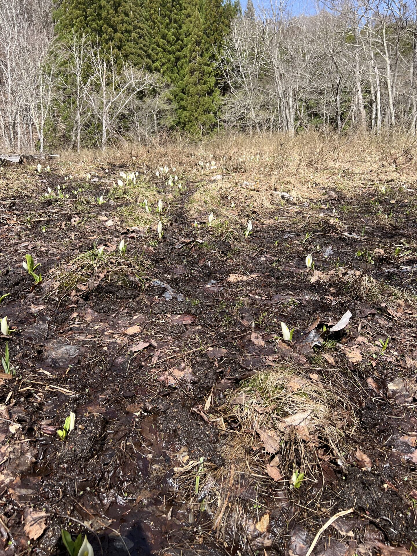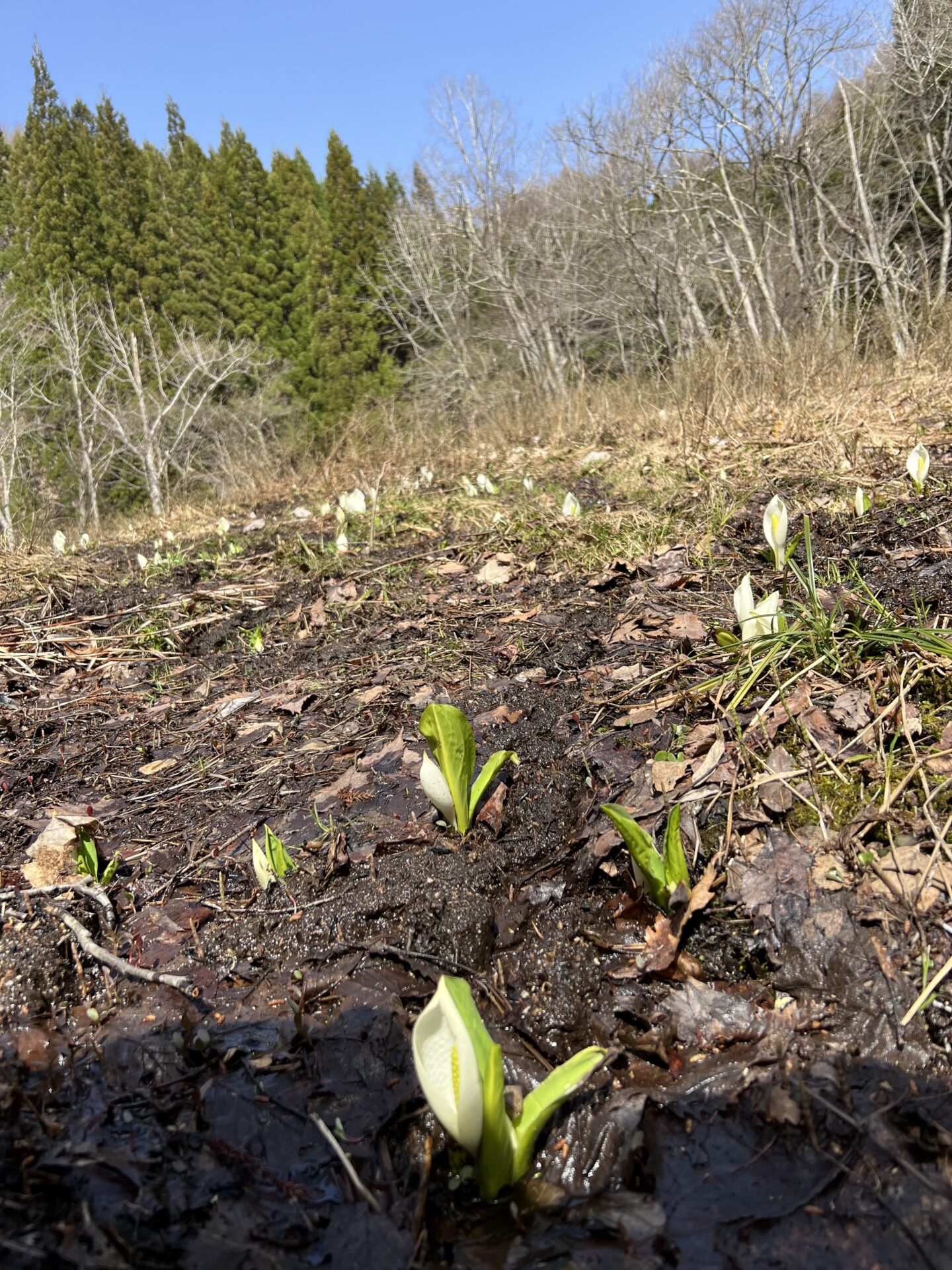 越本水芭蕉の森ではミズバショウが見頃を迎えています。