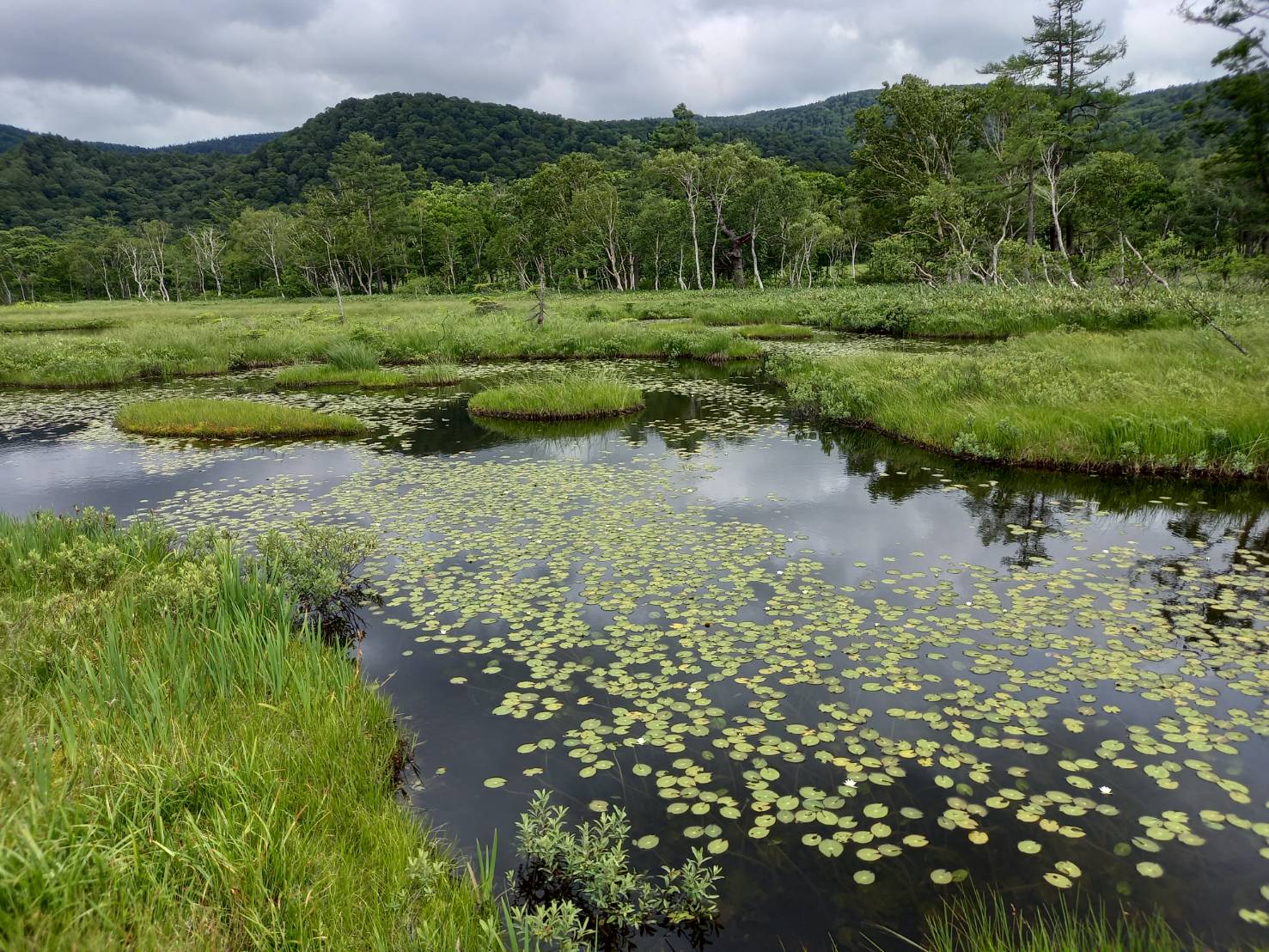 池塘にはヒツジグサ、オゼコウホネも咲いています!