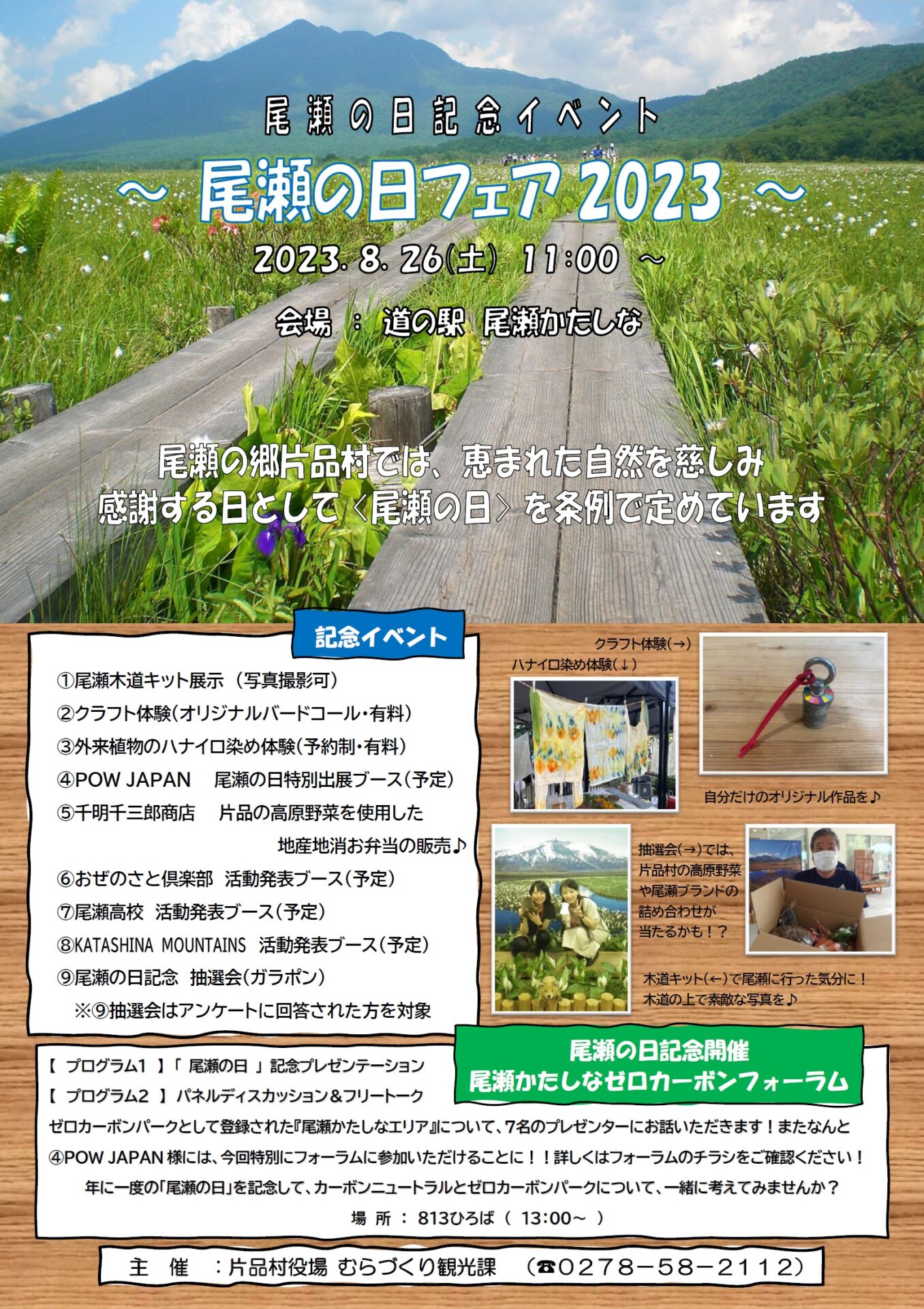 尾瀬の日フェア2023 チラシ▶https://www.vill.katashina.gunma.jp/gaiyou/kakuka/kanko/files/fair.chirashi.pdf
