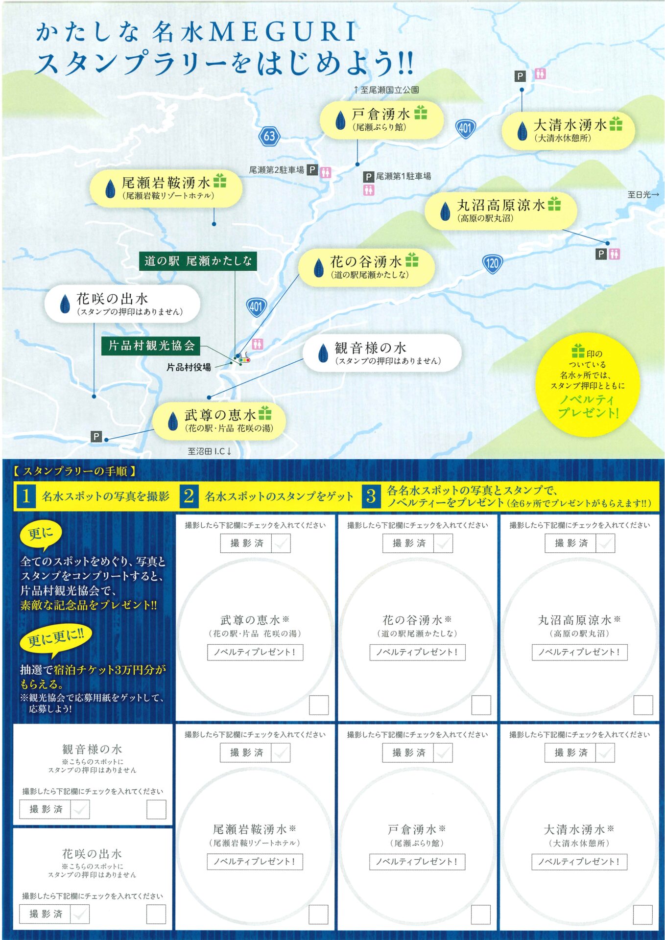 道の駅尾瀬かたしな・花の駅・片品 花咲の湯・片品村観光協会・ほかスタンプ押印のある各所スポットにてチラシをご用意しております😊