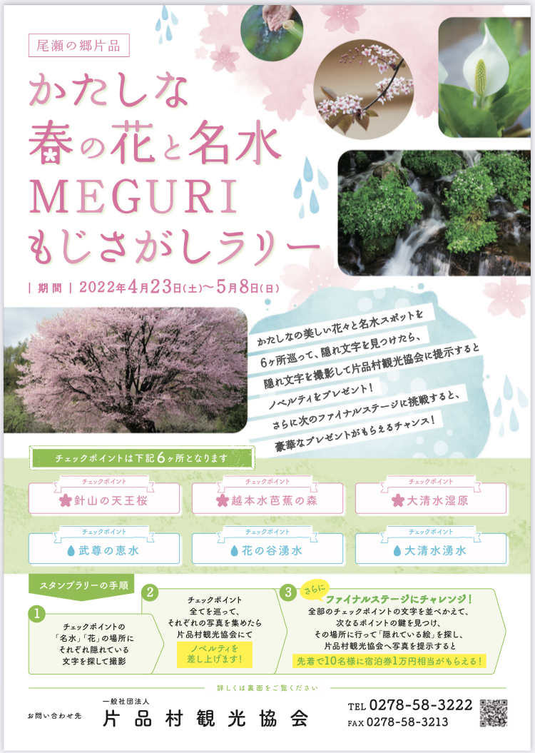 \尾瀬の郷かたしな 春の花と名水MEGURI もじさがしラリー♪/