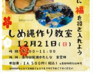 今年のお正月も手作りお飾りで向かえませんか? 神棚や玄関などに使うしめ縄をいろんな形で作れます ぜひお出かけくださいませ […]