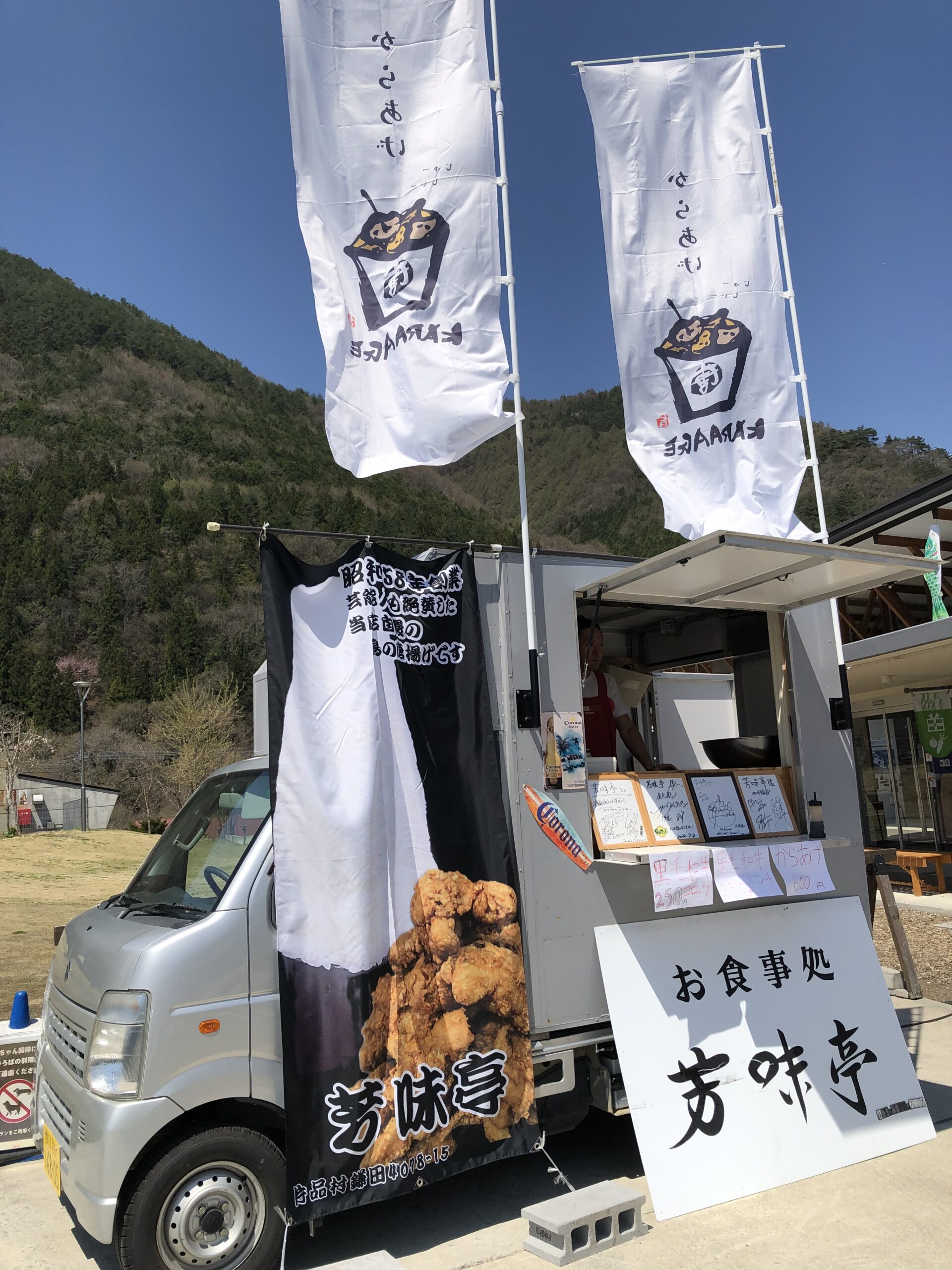 キッチンカーでは唐揚げやメンチカツなど販売中