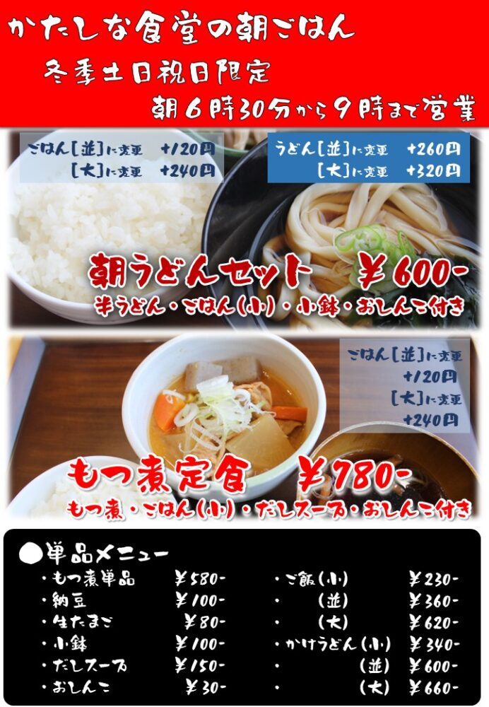 冬季間限定 土日祝日のみ朝定食営業 6:30~9:00