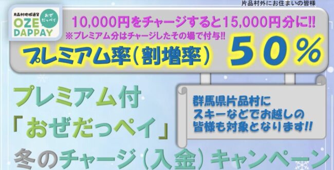 『プレミアム率最大50%』おぜだっペイ冬のチャージ(入金)キャンペーン♪